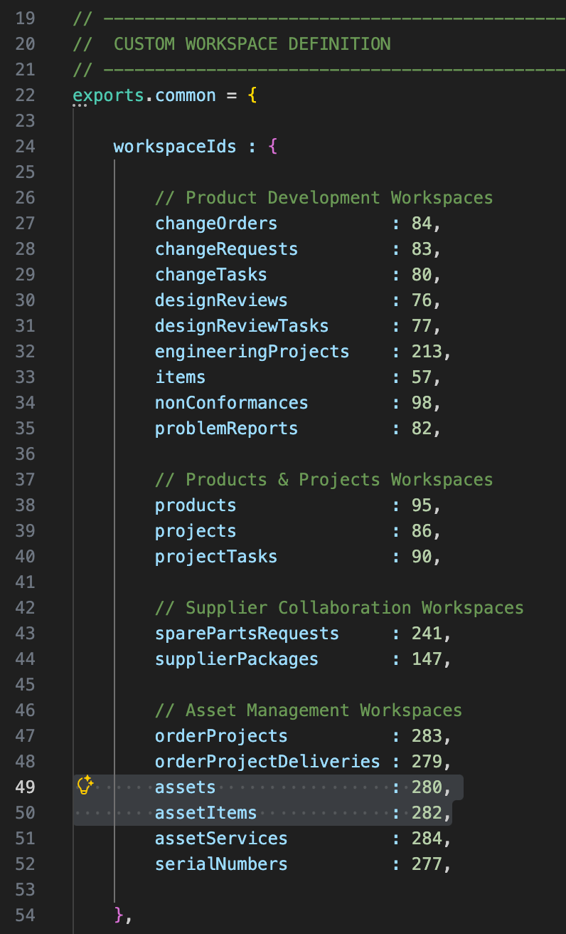 | workspacesIn | ['Items', 'Items and BOMs'] | Defines the list of workspaces to search in. In addition, only recently viewed items of the defined workspaces will be displayed in the panel Recent Items. |